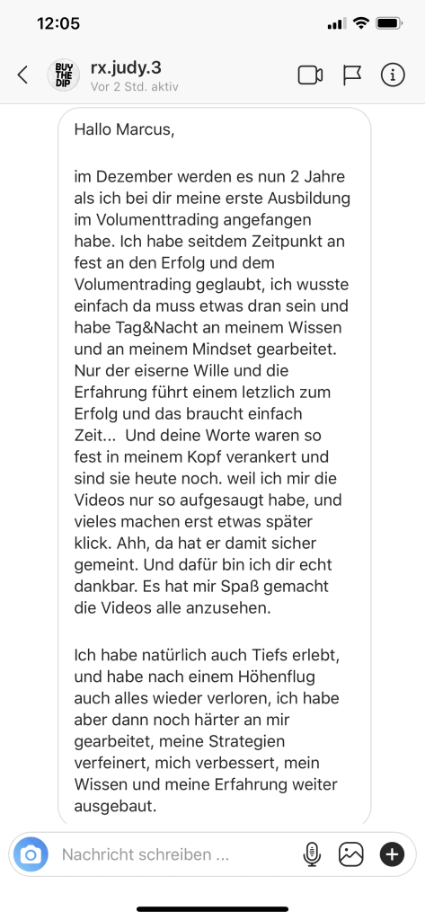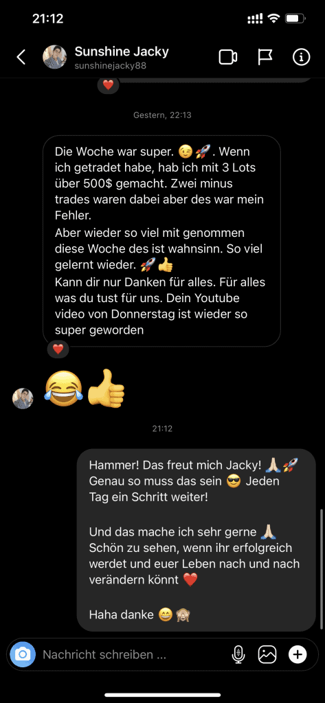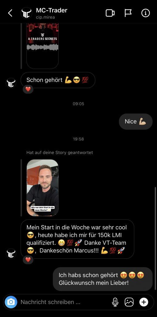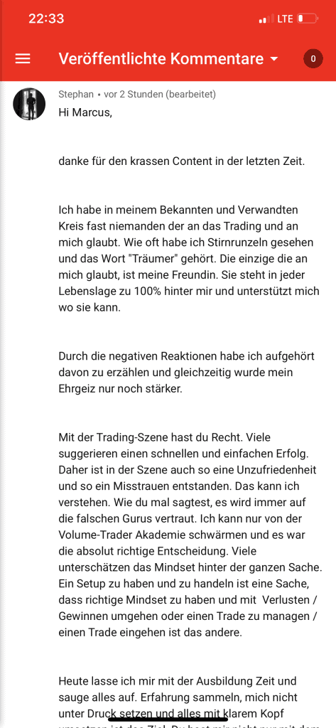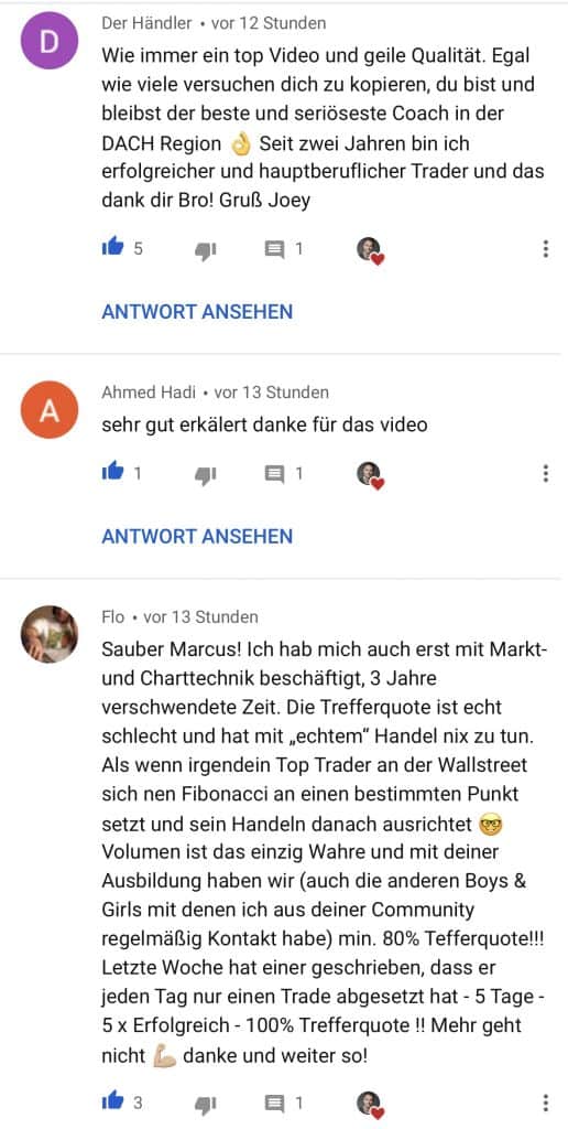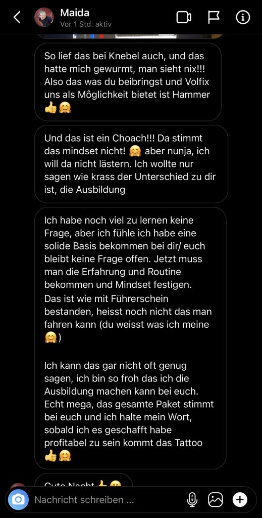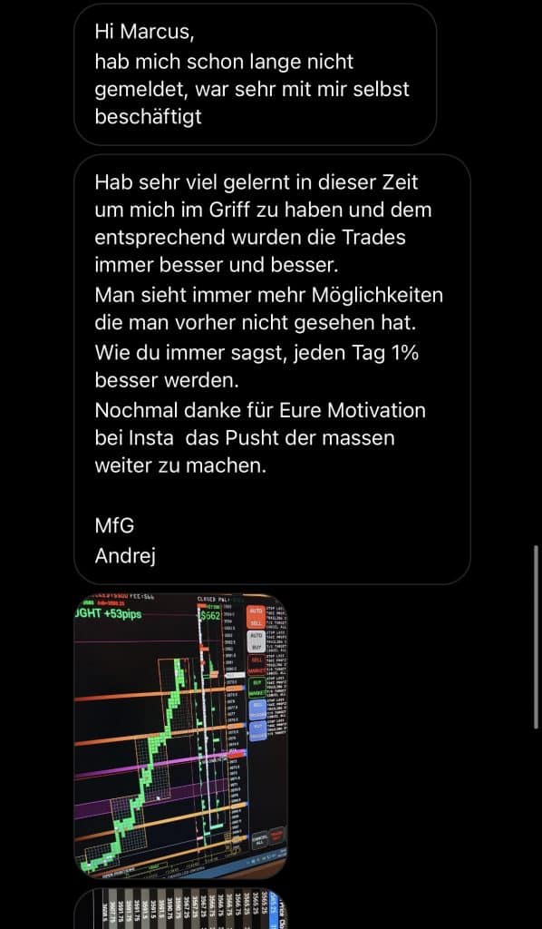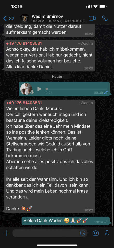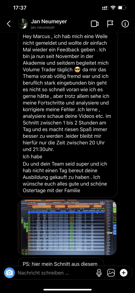 Auf dieser Seite findest du hunderte Feedbacks von Auszubildenden und generell unserer Community. Für uns als Volume-Trader steht die Community immer an erster Stelle. Gemeinsam macht es einfach mehr Spaß. Wir achten darauf, dass sich jeder gegenseitig unterstützt, und erreichen gemeinsam echte Erfolge und Ziele.