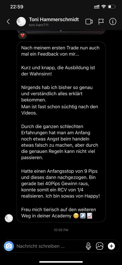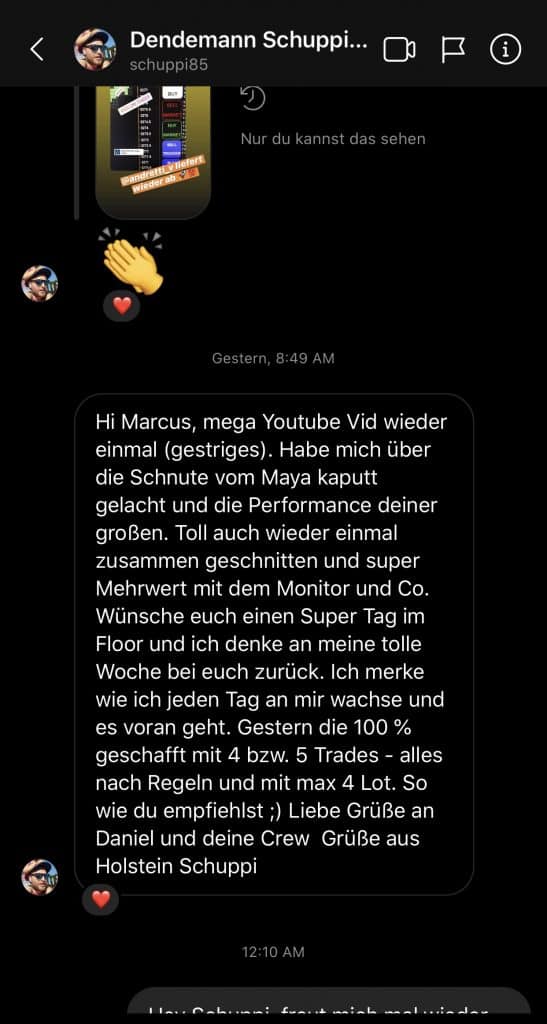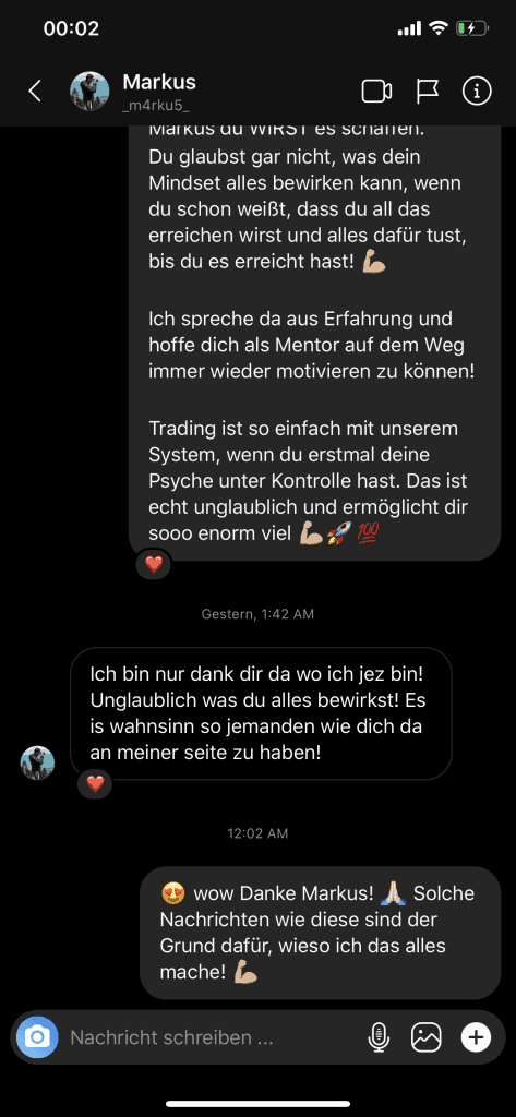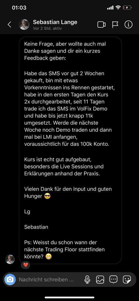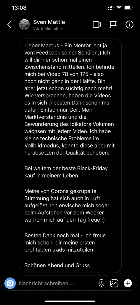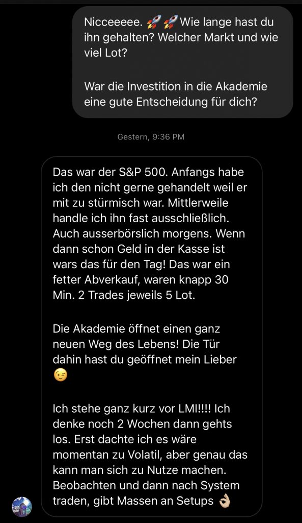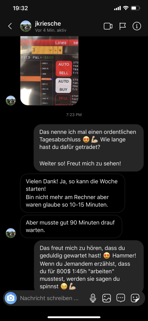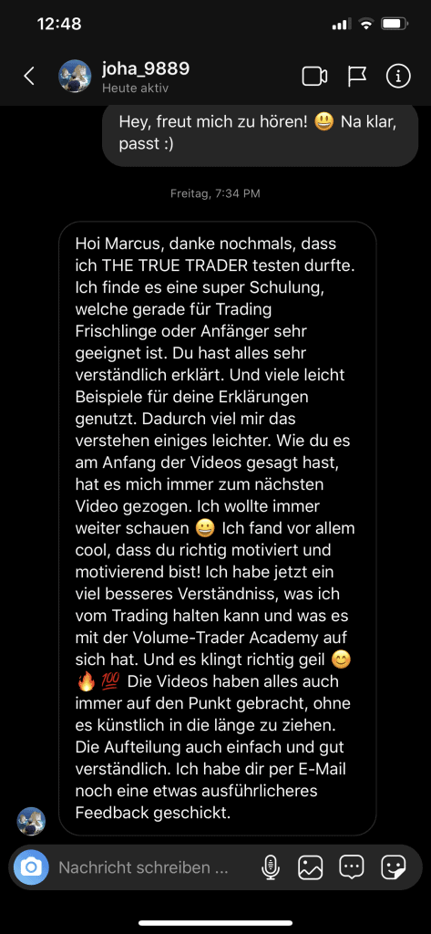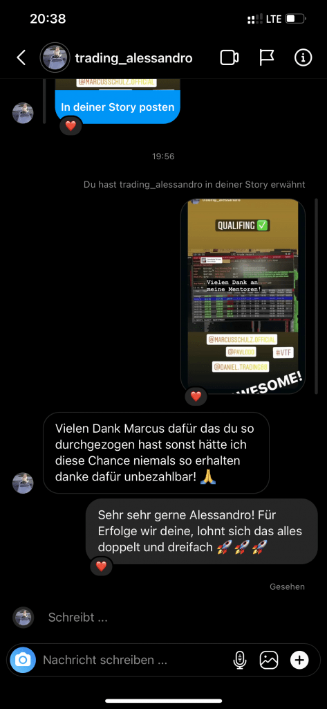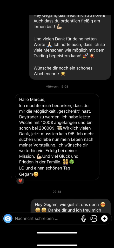 Auf dieser Seite findest du hunderte Feedbacks von Auszubildenden und generell unserer Community. Für uns als Volume-Trader steht die Community immer an erster Stelle. Gemeinsam macht es einfach mehr Spaß. Wir achten darauf, dass sich jeder gegenseitig unterstützt, und erreichen gemeinsam echte Erfolge und Ziele.