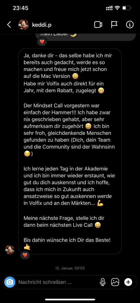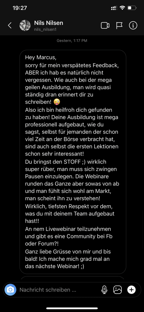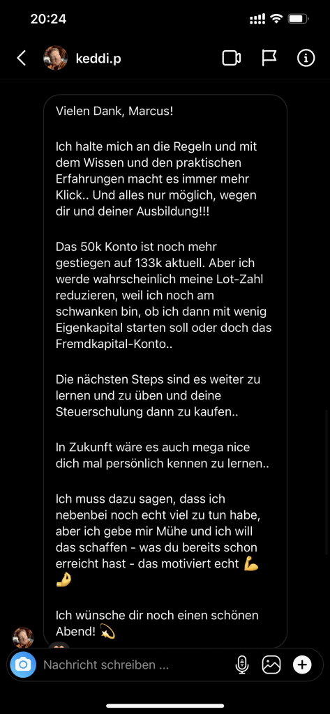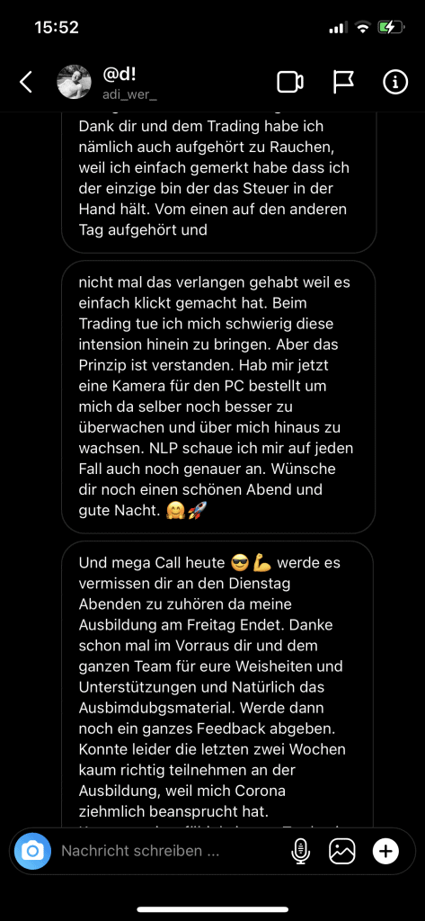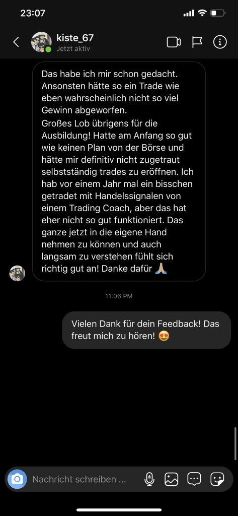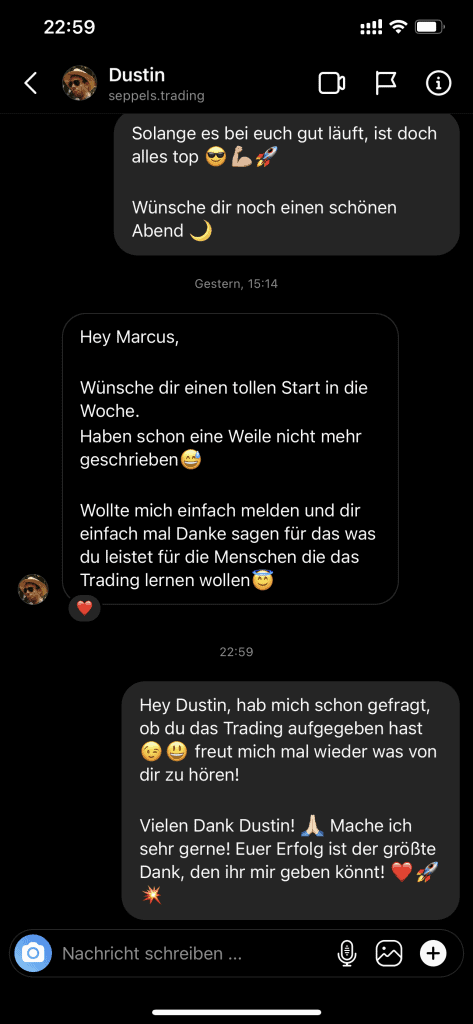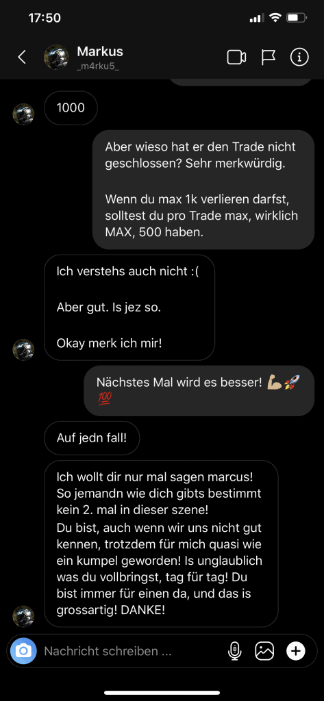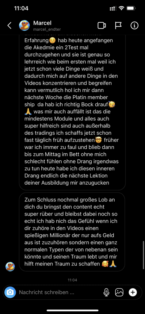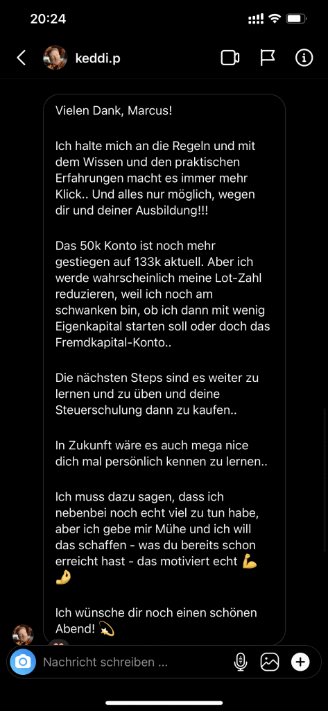 Auf dieser Seite findest du hunderte Feedbacks von Auszubildenden und generell unserer Community. Für uns als Volume-Trader steht die Community immer an erster Stelle. Gemeinsam macht es einfach mehr Spaß. Wir achten darauf, dass sich jeder gegenseitig unterstützt, und erreichen gemeinsam echte Erfolge und Ziele.