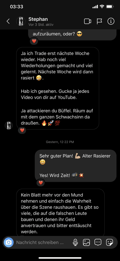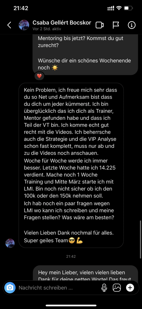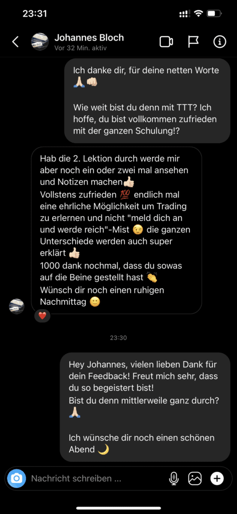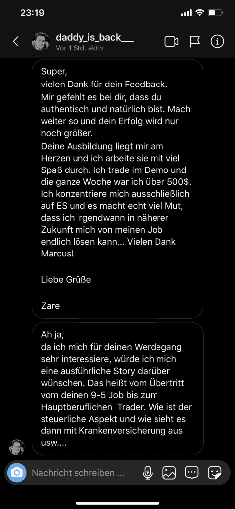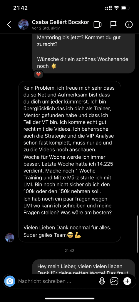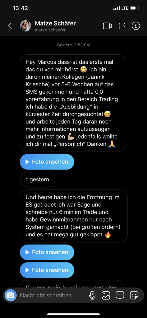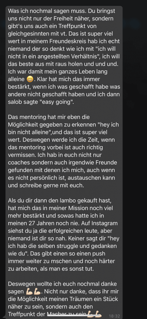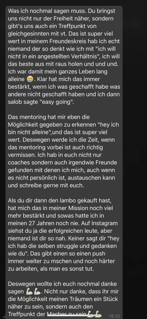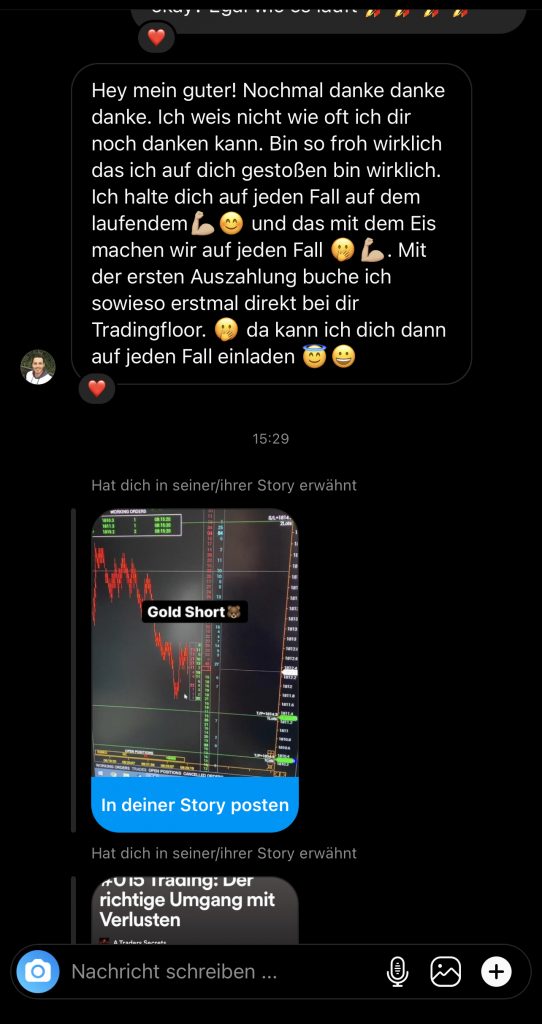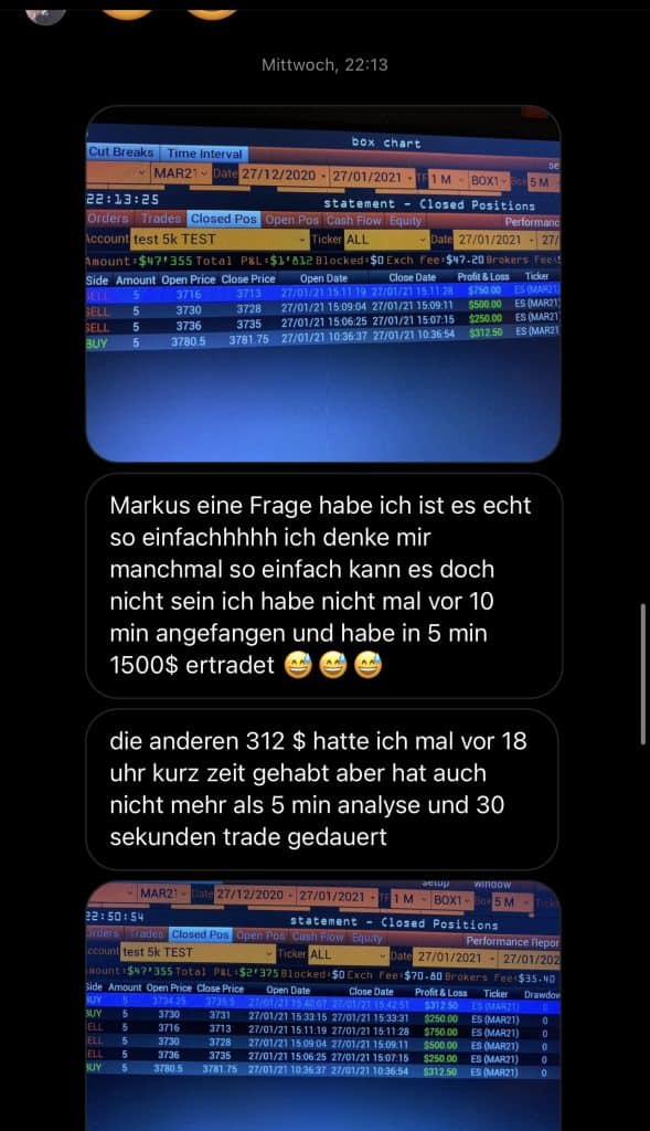 Auf dieser Seite findest du hunderte Feedbacks von Auszubildenden und generell unserer Community. Für uns als Volume-Trader steht die Community immer an erster Stelle. Gemeinsam macht es einfach mehr Spaß. Wir achten darauf, dass sich jeder gegenseitig unterstützt, und erreichen gemeinsam echte Erfolge und Ziele.