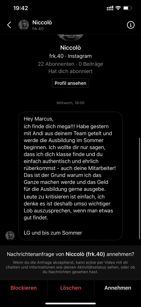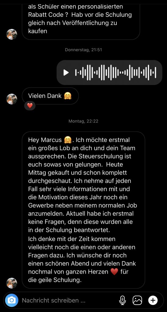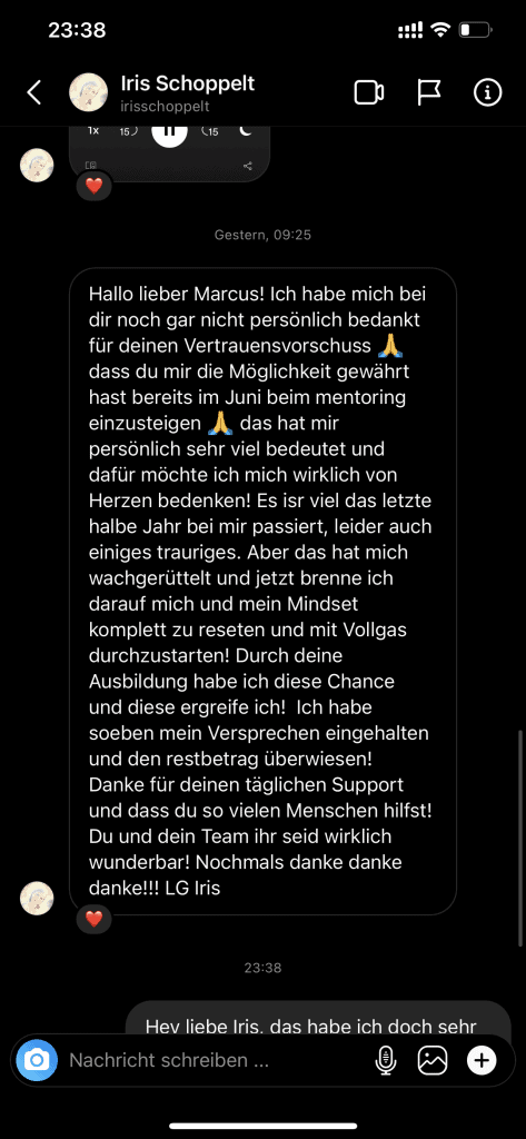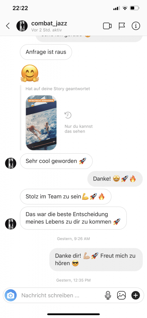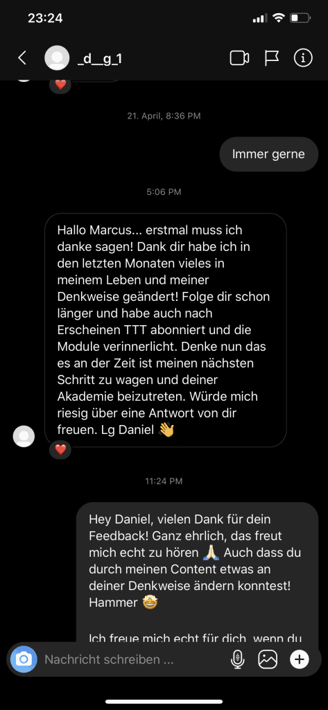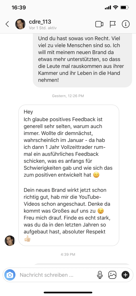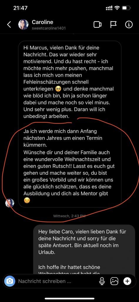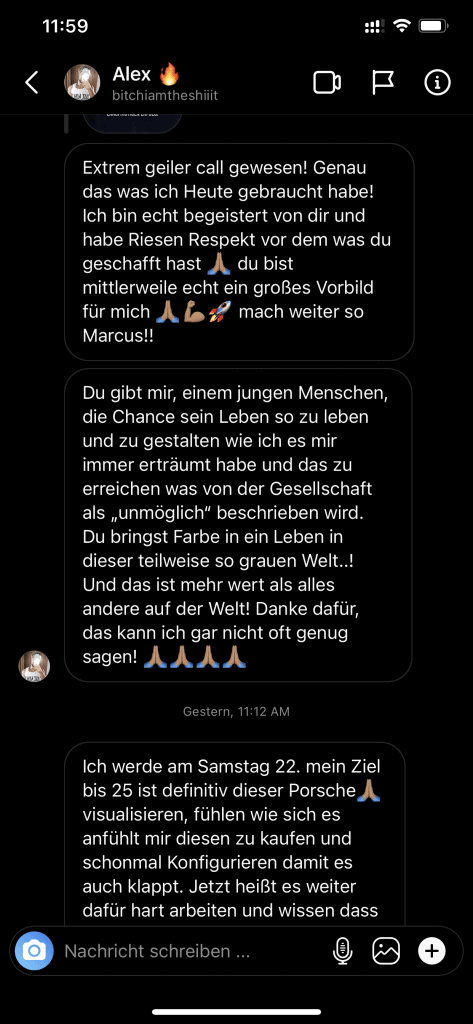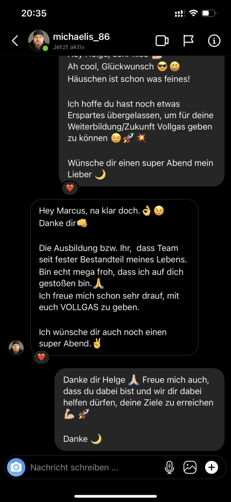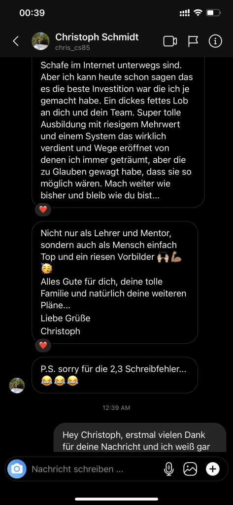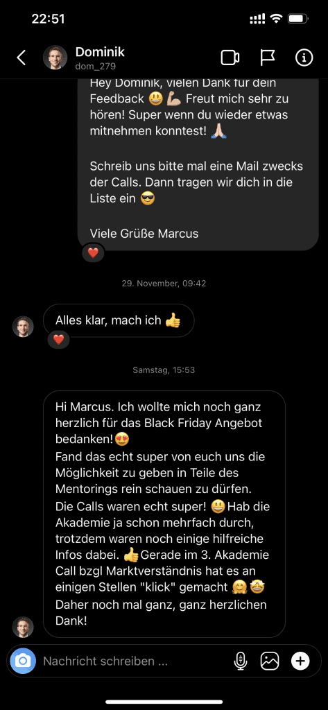 Wir wollen nicht nur zufriedene Kunden, sondern Kunden mit echten Resultaten. Feedbacks wie die, die du gleich lesen wirst machen uns jedes mal aufs neue stolz. Solche Momente bleiben in Erinnerung.