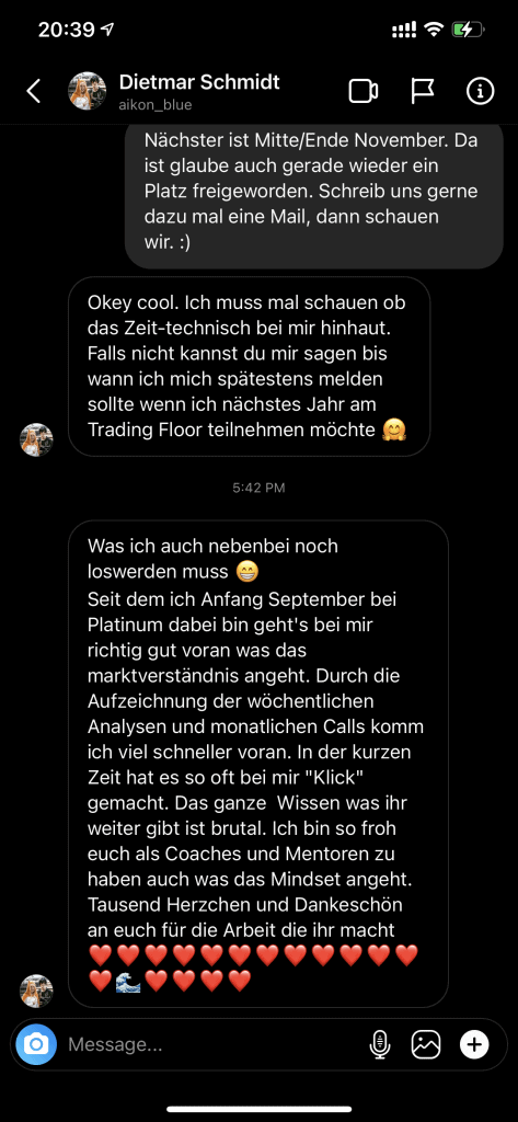 Wie du sicher weißt hat dein Umfeld einen maßgeblichen Einfluss auf deinen Werdegang und deinen Erfolg. Deswegen wollen wir sicherstellen, dass du genau das Umfeld bekommst um als Trader erfolgreich zu werden.